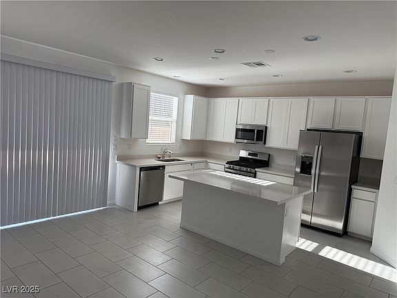 Desert landscapingNice size yardBeautiful kitchen with islandTile floors
