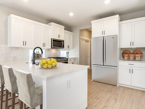Preferred lender incentive! Move in ready home - Popular cottage home floor plan with open concept living! Rear loading home with a full two-car garage, large kitchen with pantry, quartz counters, gas appliances and full height backsplash. Covered porch off of the kitchen is great for grilling. The large upstairs Primary suite has a sitting area, dual sinks and a walk in closet! Huge loft/bonus room upstairs is a spacious second living area! HOA includes neighborhood park, pool and clubhouse, front yard maintenance and walking trails in the green space with beautiful ponds! Restrictions apply.