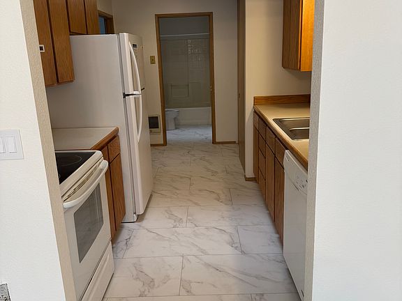 Clean and Fresh 2 bedroom 1 bath in modern single story four plex near Lake Sacajawea, Peace Health and Safeway. New paint carpeting and flooring throughout. ALL appliances are included, stove refrigerator dishwasher and washer dryer. Well maintained building with sound proofed walls. This unit has a single garage with opener. A rear garage door leads to a large private patio between the garage and the apartment. Garage must be used for parking vehicle. Tenant pays Longview water/sewer/garbage. Astound Broadband available. Small pets may be negotiable with a minimum $125 pet fee. No puppies or barking dogs.