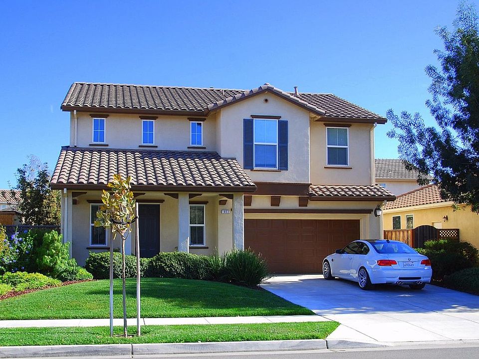 Monte Bella Beauty shows like a gem! Upon entry you are greeting by soaring ceilings in the light & bright family RM. A separate family room is open to the sunny kitchen with upgraded tile flooring, breakfast bar & pantry. A sunny breakfast nook offers views to the back yard w/ sun deck for outdoor living, & built in water feature. The second level leads to a spacious master BR w/ soaking tub, walk-in closet and double sinks. Indoor laundry room has extra linen storage. Clean as a whistle & move-in ready.