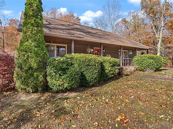 PRICE IMPROVEMENT! You'll love this one-owner home tucked away on a quiet cul-de-sac in The Oaks subdivision in Lanesville, sitting on just over an acre with beautiful wooded views. Offering 2,760 sq. ft. of finished living space, this 5 bedroom, 3 bath home is designed for comfort, flexibility, and privacy. The primary bedroom is located on the main level and features its own private en-suite bath. A second bedroom on the main floor offers flexibility for guests, a home office, or main-level living needs, along with another full bath for convenience. Upstairs, you'll find three additional bedrooms, including one that's exceptionally spacious with a sitting area, plus another full bath. The kitchen features granite countertops, great cabinet space, and appliances that stay. The cozy living room includes a fireplace, creating a warm, inviting atmosphere. You'll also appreciate the updated Andersen windows and doors. The basement has been professionally waterproofed with a transferable lifetime warranty and includes a wood stove, plenty of storage, and a pool table that stays. Outside, enjoy a brick patio with fire pit and multiple outdoor spaces to relax - from the welcoming front porch to the back patio and upper deck overlooking the woods. The oversized two car garage includes shelving for extra storage. With space, privacy, and room to grow, this home offers an ideal setting in sought-after Floyd County. Sq ft & rm sz approx.