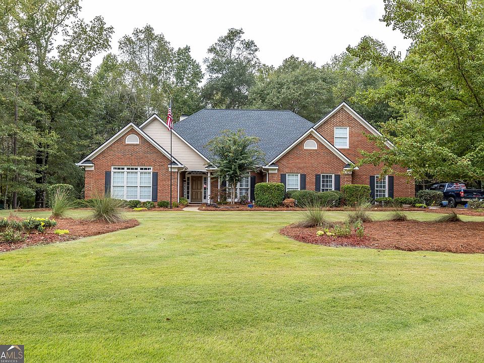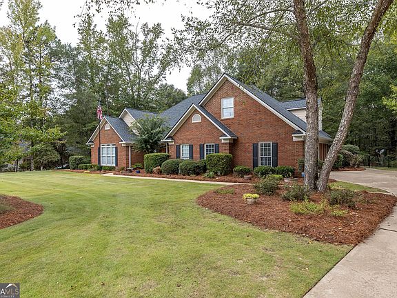 Located in the desirable Liberty Hall Subdivision, this all-brick home sits on a beautifully landscaped 1-acre lot with manicured emerald zoysia lawn. The property features 5 bedrooms and 4 full baths, offering both space and functionality. The main level includes a large master suite with his-and-her walk-in closets, soaking tub, tile shower, and dual vanities. The home offers multiple living areas, two fireplaces, a sunroom, and a formal dining room, along with an upstairs bonus room that includes an additional bedroom and bath-ideal for a teen or guest suite. The kitchen is equipped with granite countertops, gas cooktop, double ovens, pantry, and a breakfast room. Elegant interior features include hardwood floors, crown molding, and trey ceilings throughout. Outdoor spaces are designed for relaxation and entertaining, featuring a custom deck, pergola with hot tub area, covered patio, and a fenced backyard with mature trees providing added privacy. Additional highlights include a two-car garage with fully floored attic, and an additional large storage room, new roof with 50-year warranty, and updated septic system.