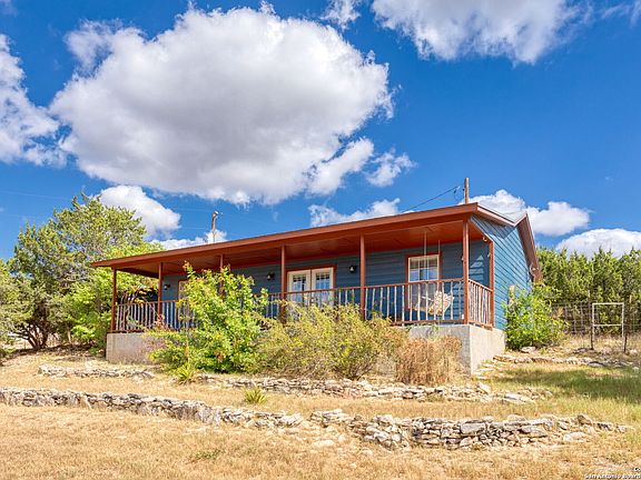 Discover this captivating hill country delight nestled on a sprawling half-acre of land. Surrounded by mature oak trees with a charming front yard enclosed by fencing. Enjoy each evening with breathtaking sunsets from the expansive covered front porch, ideal for savoring peaceful evenings. Inside find custom stained concrete floors that add a stylish touch, with His and Hers primary bedroom closets spaces. While the exterior boast durable metal roofing. Relish in the stunning views from your front porch or living area and embrace the freedom to live your way. Bring your chickens or other animals and enjoy country living without limitations. Also boasting a detached single-car garage and an additional carport, providing ample covered parking. This is your opportunity to experience freedom and serenity of true hill country living. Some dirt roads in neighborhood, plan accordingly.