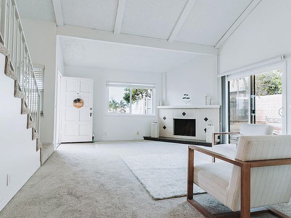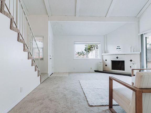Beach rental! 1022 includes two bedrooms plus an enclosed loft being used as a third bedroom with closet, two bathrooms--one on each level--a cozy living room with a wood-burning fireplace, a kitchen with wood cabinetry and granite countertops, and a downstairs laundry room. This unit also offers access to a generously sized backyard and a two-car garage with side entry.New windows have been installed, new paint, and new carpet!