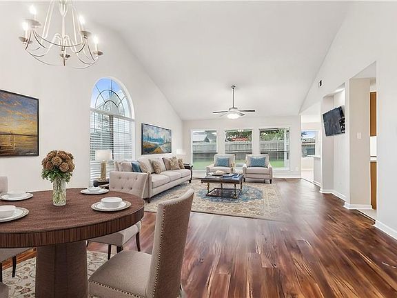 Nestled in the sought-after Sterling Oaks Subdivision, this beautifully maintained home is within an award-winning school district, making it an ideal choice for families. Boasting four nice-sized bedrooms and two bathrooms, the residence features an inviting open floor plan that bathes the interior in natural light. The kitchen has granite countertops, a gas range, a built-in microwave, and a practical one-level bar great for casual dining or entertaining guests. The property's exterior is equally impressive, with landscaping and the added convenience of gutters equipped with leaf guard protection to ensure ease of maintenance. The spacious, fully fenced yard offers security and privacy and features excellent drainage, making it great for outdoor activities and gatherings. Step into the primary bedroom, where you'll find a walk-in closet and an en-suite bathroom with a separate tub and a walk-in shower—providing a retreat at the end of the day. With its prime location just minutes from shopping, schools, interstate, and hospitals, this home combines comfort, style, and convenience.