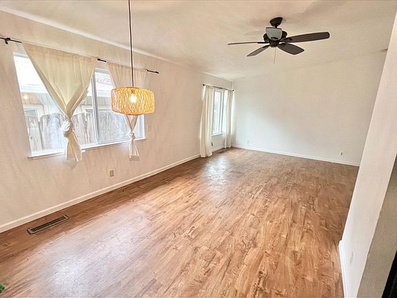 Back unit of a duplex separated by your own full garage with back/side yard and garden area. One full bathroom and one bathroom with standing shower in master bedroom. Vinyl plank flooring besides carpet in bedrooms. White interior fridge/oven/dishwasher/washer/dryer included. Plenty of privacy and parking with large driveway. Walkable from downtown Chico.