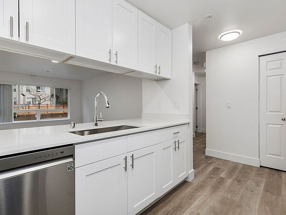 Welcome Home to a Higher Quality of Living! This beautiful 950 sq foot, 2 bedroom 1 bathroom apartment is the best in city living providing you location and convenience. There are 2 parking spaces included in the rent. The recently remodeled, secure building is located right next to the bus line and is only minutes away from I-5 and Hwy 99. With the city as your backyard enjoy a bike ride or relaxing walk along the popular Interurban Trail. Partake in the fantastic shopping, dining and local coffee shops, all in walking distance. Come home to your tranquil, newly renovated apartment and put your feet up. This Unit features a beautiful, large picture window in the living room providing lots of natural light, and brand-new stainless-steel appliances with warm personal touches.