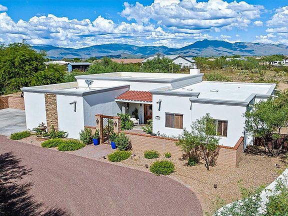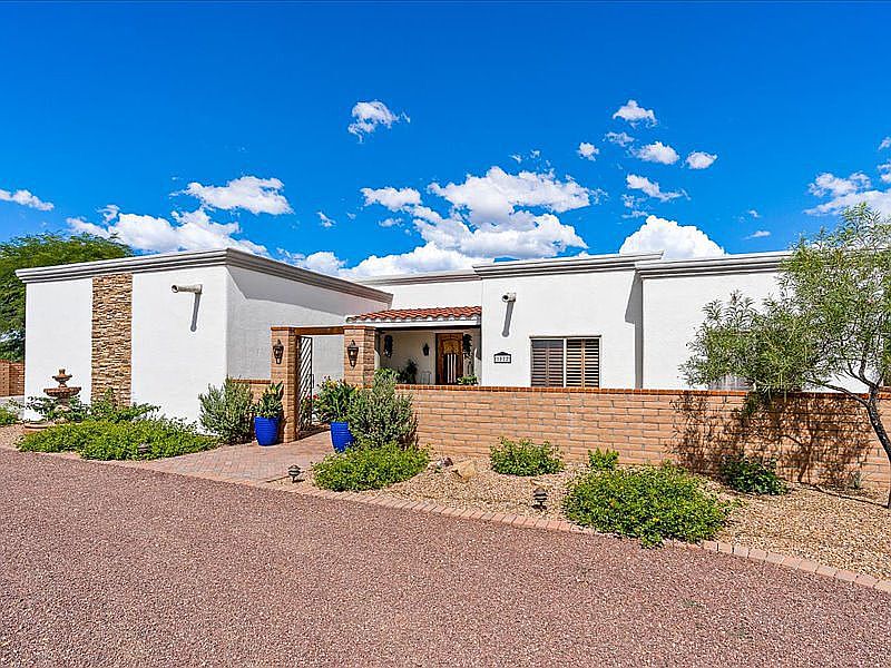 Beautiful home in highly sought after community of Vail. Welcoming Spanish inspired courtyard sets the tone for this truly special home as you walk through the wrought iron gates, custom pavers walkway onto cantera styled front porch. Nine foot front door leads you into the open floor plan perfect for entertaining. Large picture windows bring the outdoors in. Scored concrete flooring, fireplace, wood shutters in bedrooms/laundry and solid wood doors throughout. Master suite is extra large and enjoys luxurious master bath, includes jetted tub, separate shower and dual sinks and walk in closet. Kitchen lovers dream with granite slab countertops, tall maple cabinets and a walk in pantry. Dedicated laundry room, perfect for keeping family organized. Amazing wrap around porch perfect for enjoying the beautiful landscape with access to patio from master. Multiple areas ready for outdoor living. Extra parking area adjacent to two car garage. Property is fully fenced. Bring your toys, horses and your offers! Seller concessions available with strong offer. Buyer agents welcome.