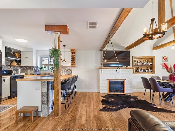 Welcome to 1022 Oak in Kingsville! This beautifully renovated 2-storey home offers 3+1 bedrooms, 2 baths, and modern updates throughout. The main floor features custom maple epoxy countertops, a spacious living area with new electric fireplace, 4-pc bath with jacuzzi tub, and a versatile bonus room ideal as an office, bedroom, or playroom. The second level boasts 3 bedrooms, a renovated bath, and laundry. Bathrooms were renovated in 2021 with updated plumbing, tub, and faucets, plus 2025 upgrades of tile, humidity-sensing fans & dimmers. Other updates include ceiling fans in all bedrooms, solid wood baseboards, new entry doors, furnace/AC & appliances (2021), and owned water heater (2023) . Outdoors enjoy a fenced yard (2024/25), playground, new 12x20 aluminum pergola with adjustable roof, and Old Castle patio. Detached 2.5-car garage with gas line and 60-amp panel. Spacious 32x60 ft driveway. Fully renovated in 2021 with 2025 upgrades, this move-in ready home is perfect for families!