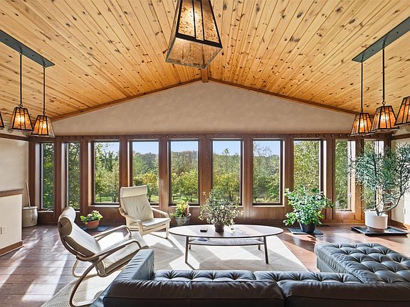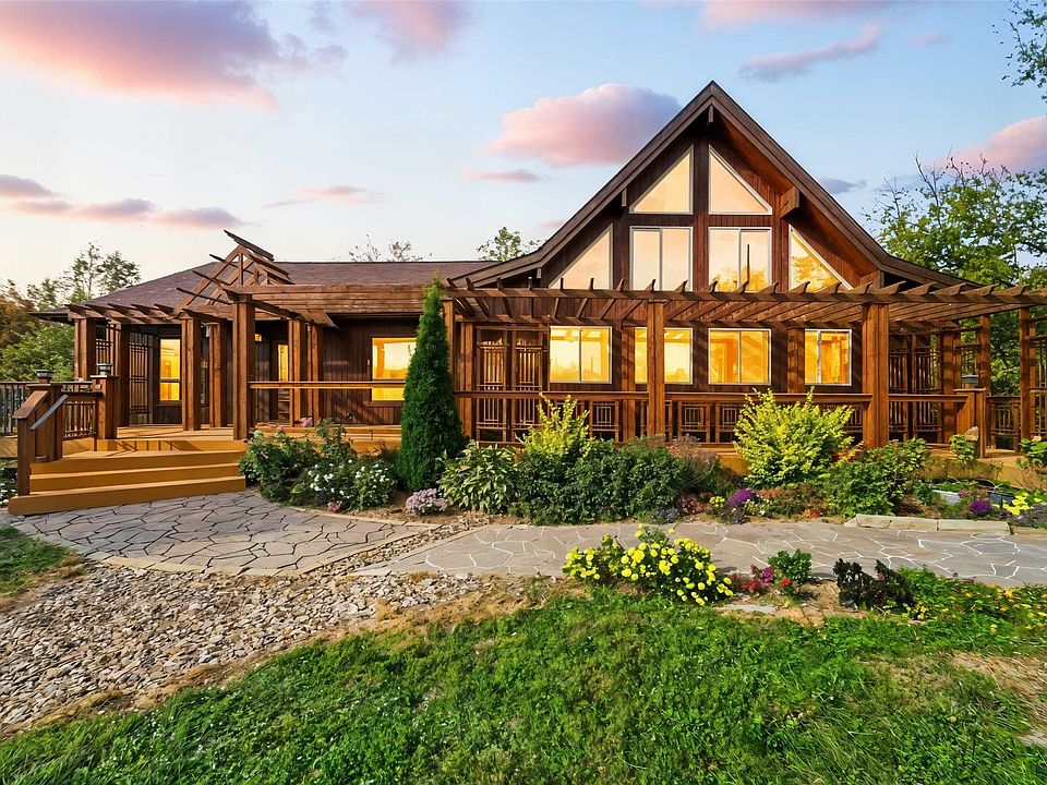 Step into the comfortable elegance of an inviting home in an amazingly beautiful natural setting. This exceptional property offers custom craftsmanship highlighting high-end details throughout. The Main Home: Gourmet Kitchen & Great Room The heart of the home showcases durable engineered hardwood flooring and premium Pella windows. The kitchen is a chef’s delight, featuring custom quarter-sawn oak cabinetry with inset doors, tailor made copper sinks, a handmade tile backsplash, & high-end craftsman lighting. The living area is crowned by a natural pine vaulted ceiling. The home features a large great room with post and beam construction, with cedar vaulted ceiling is ideal for formal dining or living. An open loft provides a perfect home office or craft area. The primary suite features travertine floors, an extra-large closet room with built-ins, a spa-like bath with a large shower & soaker tub. Superior Outbuildings with Income Potential The 30x30 Finished Barn: Functional space with HVAC & partial basement, concrete floor, floor drains, and options for stalls. New AC & water heater installed in 2025. The Cabin: Adaptable income property where everything stays—from linens and dishes to most furniture, with an upstairs unit bathed in passive solar light and a downstairs unit with a good rental history. The 30x60 Steel Shed: Expansive space with concrete floor, workbench, and storage rooms (parks 2+ cars). retreat of your very own. Embrace this uniquely captivating estate!