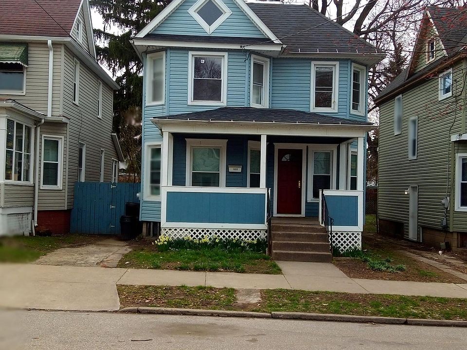 This is a four bed room with off street parking. A new kitchen, new flooring on the second floor. A porch at the front of the house. A deck in the back of the house with a privacy fence. Sorry this house does not have AC. I did not select this as an option. Has washer dryer electric flat top range/oven and a refrigerator. One year lease $850 plus utilities