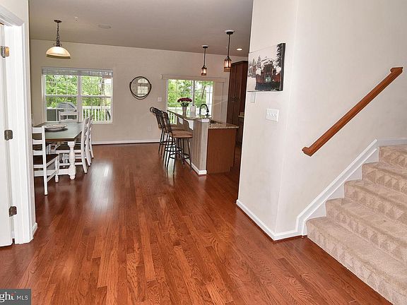 Immediate Delivery on this former Model Home! Why wait for new construction when you can own this luxury brick front, end unit, garage townhouse for less than new construction! All the builder bells and whistles plus fabulous owner upgrades ~ this home is truly turn key! No need to add window blinds and ceiling fans the owner has it covered with premium wood blinds and fans.The gourmet kitchen includes a granite breakfast bar and stainless appliances, plus tile backsplash, under cabinet lighting and pendant lights. Enjoy the outdoors and wooded view on the spacious low maintenance deck or the private rear paver patio complete with porch swing. Hardwood floors, recessed lighting, luxurious bathrooms, surround sound ~ to name just a few of the extras. The floorplan is complete with a lower level full bath allowing dual use of the family room for visiting guests. There is even an additional storage closet and hanging shelving in the epoxy garage! Pristine and well maintained plus 7 years remaining on the builders warranty. All within easy reach of the Waugh Chapel shopping district and commuting routes to Baltimore and DC. See it today and move in before summer!