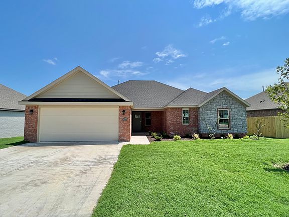 Welcome to Hickory Meadows in Tontitown, AR! This captivating Hickorywood Plan offers 4 bedrooms, 2 bathrooms, and a generous 1841 sqft of living space, thoughtfully designed to provide the perfect blend of elegance and practicality. This home features granite countertops and custom cabinetry, elevating the style and functionality throughout. The pantry offers ample storage space for all your essentials, ensuring a well-organized and clutter-free kitchen. Indulge in the luxury of a separate shower and tub in the master suite, providing a serene retreat where you can unwind and rejuvenate in peace. Enjoy an abundance of natural lighting that fills the home, creating a bright and cheerful atmosphere that welcomes you with warmth. Cozy up to the gas fireplace, adding warmth and charm to the living area, creating a perfect space to create cherished memories during colder evenings. The open-concept layout embraces the living room, dining space, and kitchen, creating a seamless flow that fosters a warm and welcoming atmosphere. This space is perfect for hosting gatherings, entertaining friends, or enjoying quality time with loved ones. Step outside to the inviting back patio, where you can enjoy the beautiful surroundings and create lasting memories with family and friends during outdoor gatherings and barbecues. Embrace the perks of community living with access to neighborhood amenities, including a playground and resort-style pool, offering endless opportunities for outdoor fun a
