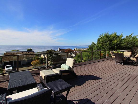 Sweeping ocean views from north to south from this updated beautiful home set in an upscale neighborhood. Enjoy watching the whales and dolphins and gorgeous sunsets. Gated courtyard with hot tub to relax by the bay. This is a great home for entertaining both inside, and on the large outside deck which faces the ocean. The garage has been converted to a wonderful entertainment center with theater seating, and may be converted back to garage easily.
