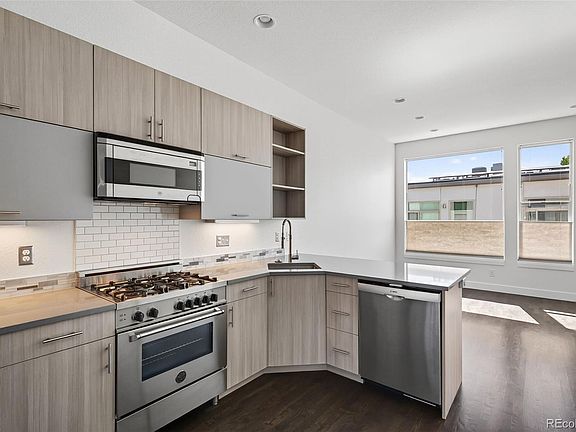 Fabulous contemporary row home in the heart of Lower Highlands! This stylish 2-bedroom, 2-bath residence offers a modern floor plan with exceptional finishes and a prime location. The entry level features a spacious bedroom or potential office, with walk-in closet, full laundry, a three-quarter bath, and convenient access to the attached 1-car garage—an invaluable amenity in LoHi. The garage is oversized and includes a storage and access to crawlspace for additional storage. The upper level showcases an open-concept layout with hardwood flooring, expansive windows that flood the home with natural light, and a chef’s kitchen complete with quartz countertops and premium Bertazzoni appliances. The primary suite includes dual closets and a private three-quarter bath. Retreat to the rooftop deck, ideal for entertaining or relaxing with panoramic views of the Denver skyline, complete with a gas hookup for grilling. Surrounded by dining, shopping, and entertainment, this home combines modern design, comfort, and unbeatable location. The seller has recently painted the entire home, refinished the hardwood floors, and replaced all of the carpet. No HOA - party wall agreement covers water, landscaping and snow removal. Average $100/month.