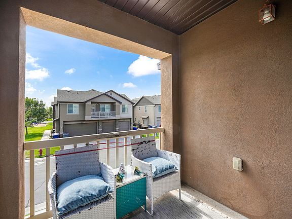 Experience the comfort of a condo with the privacy of a townhome - no neighbors above or below! This stylish and move-in ready 2BD/1BA home features a fully updated kitchen with butcher block counters, subway tile backsplash, farmhouse sink, modern lighting, and all appliances included. The open living and dining area offers vaulted ceilings, recessed lighting, and LVP flooring throughout. Bedrooms are spacious with double-door closets, while the bathroom has been refreshed with modern finishes. Additional features include in-unit laundry, a private balcony, an attached garage with storage, and convenient guest parking located directly across the street. Community offers resort-style amenities: pools, hot tub, gym, splash pad, courts, clubhouses, and walking trails. Conveniently located just 15 minutes from downtown Salt Lake City, about 10 minutes from the airport, and close to shopping, dining, schools, and parks. Ideal for first-time buyers, downsizing, or investors.***Square footage figures are provided as a courtesy estimate only and were obtained from public records. Buyer is advised to obtain an independent measurement.***
