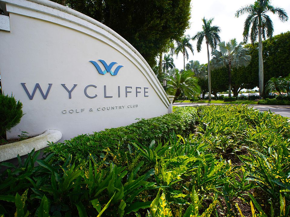 Welcome to your bright and spacious retreat in prestigious Wycliffe Country Club! This airy 3-bedroom, 2-bath condominium offers comfortable and elegant living with abundant natural light throughout. The open-concept living and dining areas are complemented by expansive windows and sliding glass doors, allowing sunshine to flood the space and offering serene views of the surrounding greenery or water features. The kitchen is well-appointed and flows seamlessly into the living area--ideal for entertaining or casual daily life.The primary suite is roomy and includes an en-suite bathroom and generous closet space. The two additional bedrooms are versatile -- perfect for guests, a home office, or hobby rooms. This unit includes a one-car garage, adding valuable private parking/storage in addition to assigned guest spaces. Step outside to your own patio overlooking one of the golf courses, where you can enjoy Florida's subtropical climate..