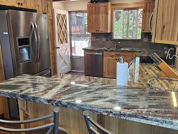 A quiet, low traffic location in the highly sought after Sierra Meadows neighborhood. The vaulted ceilings and open floor plan offer a comfortable easy living flow to this 1136 sqft., 2-bedroom 2 bath home which has been updated with beautiful granite slab and cabinetry in kitchen and updated shower and vanities in the bathrooms, wood floors throughout first level, newer instant on hot water heater & newer pellet stove. Plenty of outdoor living spaces on this .30 acres of property, with two large decks, one steps off to the front of the house the other off the kitchen to the back yard which extra enforced and wired for hot tub. There are several storage spaces; storage shed and a workshop in a tandem two car basement garage. Also has extra wide freshly sealed driveway parking, room for RV, boat and trailers too!! This home is just minutes away from world class skiing, mountain biking, downtown Truckee, gourmet dining, Regional Park ball fields, Farmers Market, rodeo grounds and concert venue. This IS the opportunity to own a piece of the idyllic Truckee lifestyle—a true little gem.