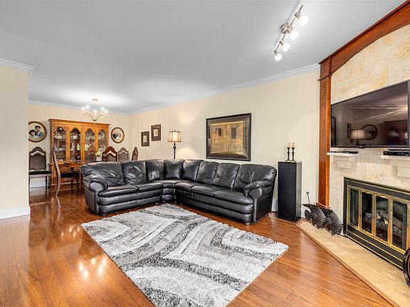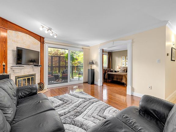 Welcome to Stornoway! Next to South Arm Park & Com. Center, this renovated 2-bedroom corner unit offers 1,050+ sq. ft. of stylish living. Features include new maple kitchen cabinets, double granite counters, tile backsplash, S/S appliances with B/I microwave, porcelain & travertine tile, quality laminate floors, heritage doors, custom casings, crown moulding, and updated baths with low-flow toilets & modern fixtures. Smoothed ceilings, designer paint, and an electric fireplace complete the look. The spacious master fits a king bed, has a walk-in closet & deluxe ensuite. Hot water heat, In-suite laundry with storage Optic Fibre int, 1 secured parking & locker, Rec center incls 2 salt water outdoor pools & saunas. Steps to shopping & transit. Strata fee covers sewer, water, heat & hot water.