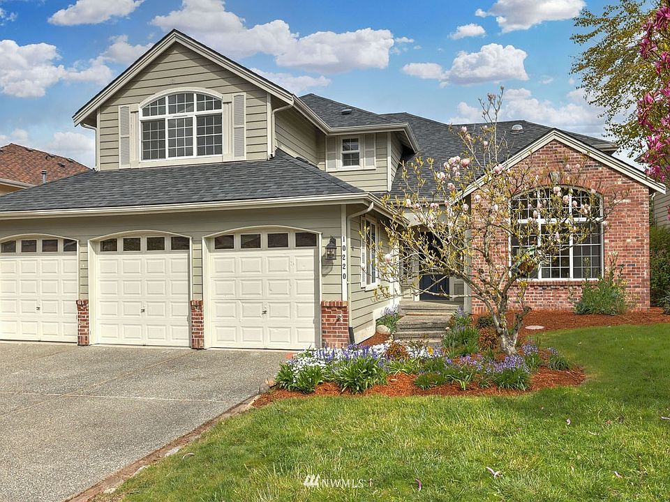 Soaring entryway, formal and informal living spaces, high ceilings, extensive gleaming floors, architectural detailing, sophisticated lighting and fixtures, French doors, classy frplc complement this remarkable flexible design. Well-equipped island kitchen features polished countertops, eating bar, pantry, all applcs stay, opens to family rm. Gracious stairway up to primary en-suite, nice-sized secondary bdrms, fresh full bath, bonus/flex room; den/fourth bdrm, half bath on main. Central AC, built-in vacuum, SMART switches, wiring for generator, newer furnace, newer roof and more. Decking, patio, garden beds, gated fenced backyard; true three car garage. Attractive setting, super convenient to I-405, I-5 access, abundant amenities.