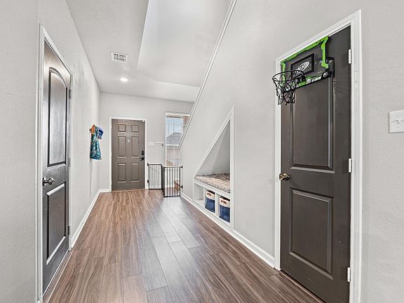 Unique touches throughout the home add charm and personality, including a children's reading nook tucked under the stairs a cozy, imaginative space designed for quiet moments or play. Outside, enjoy a beautifully newly renovated front garden bed and a spacious backyard with an outdoor bar on the patio, ideal for grilling, hosting friends, or relaxing on warm Texas evenings.