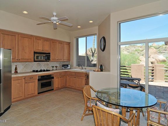 This home offers exceptional views in all of the bedrooms, kitchen and living area plus spacious patio, two balconies with surrounding views of Pinnacle Peak, City Lights and extraordinary boulders. Spacious 3 bedrooms, 3 baths, breakfast views from the kitchen, stainless steel appliances, gas cook stop plus walk in pantry w/wine refrigerator. Murphy bed in office area. Four TV'S all bedrooms and great room. Tuck under garage, quiet complex with a community pool. Ready for you to come and enjoy nature and luxury home. 1st & last month's rent + all deposits and fees required 30 days prior to arrival during high season.