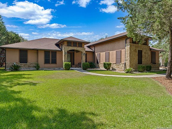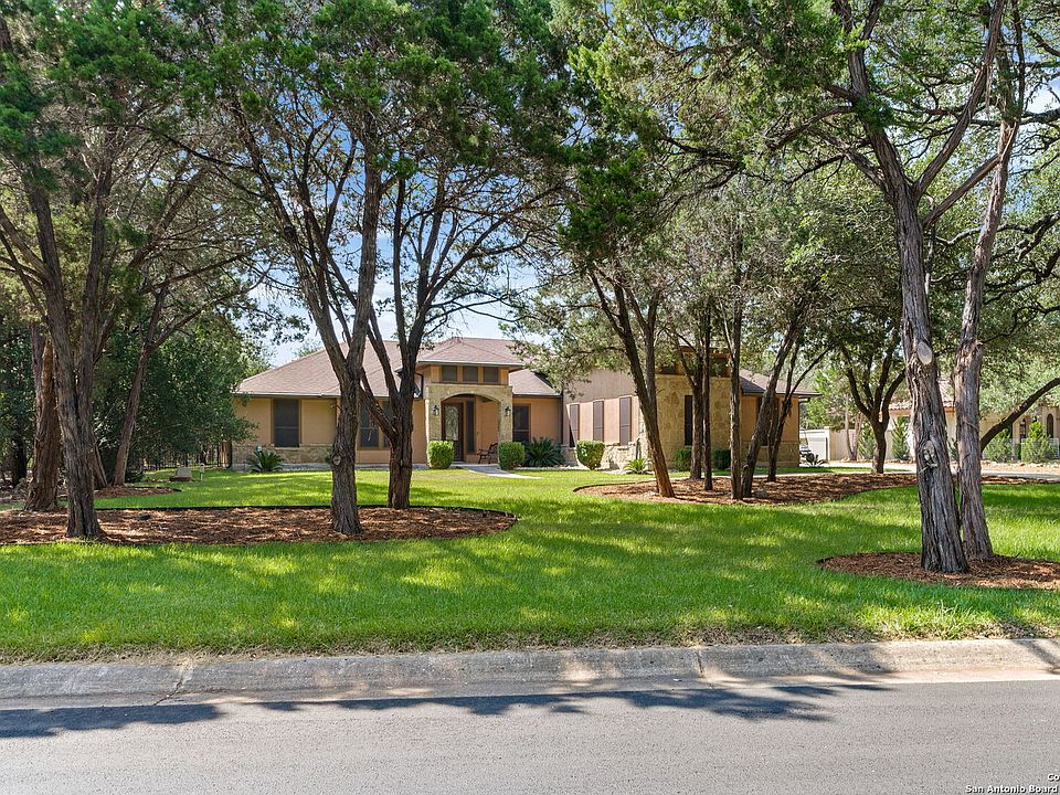 Welcome to your next chapter-this beautifully maintained one-story ranch style home offers space, privacy, and flexibility in one of the area's most sought-after neighborhoods. Nestled on nearly 1.5 acres filled with mature trees and room to grow, this 3-bedroom, 2.5-bathroom home blends peaceful living with functional design. Inside, you'll find a smart, open layout with dedicated spaces for work and play. A home office offers the perfect setup for remote work, while the separate flex/playroom gives kids or guests their own zone to enjoy. The primary suite is spacious and private, with an en-suite bath and walk-in closet. The kitchen opens to a cozy family room, making it ideal for everyday living or entertaining. Step outside to enjoy the enclosed patio or the shade from numerous trees. Whether you want to add a pool, build a workshop, or just soak in the natural setting, you've got the land for it. Plenty of space. Plenty of trees. Endless potential. Located in a quiet, well-established neighborhood that is conveniently nestled off of 1863 and Schoenthal offering easy access to 3009, I-35, and 281. Gorgeous, gated community with tree lined private roads with an amenities center complete with pool, playground, clubhouse, basketball and tennis courts. You are less than 10 miles from New Braunfels and less than 15 miles to the Cibolo/Schertz area. Highly rated Comal schools. Homes like this don't last. Schedule your showing today. VA assumable loan to qualified Veteran.