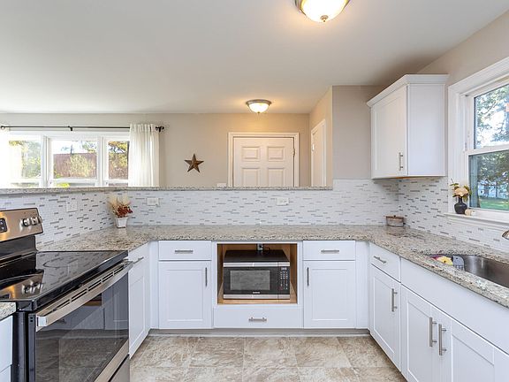 Surrounded by mature trees on a quiet lot, this updated Middlesex home offers simple comfort and modern finishes. Inside, LVP flooring runs throughout with no carpet, creating a clean and low-maintenance flow. The kitchen features granite countertops, stainless steel appliances, white cabinetry, and a glass tile backsplash for a polished look. A raised bar separates the kitchen and living areas, allowing for easy connection while keeping definition between spaces. Natural light fills the home, from the living room's large picture window to the dining area that opens to a screened porch—perfect for relaxing or enjoying the wooded view. The full bath includes a granite vanity and tiled bath surround. Set in the heart of Middlesex, this home captures small-town living with easy access to parks, local shops, and regional connections.