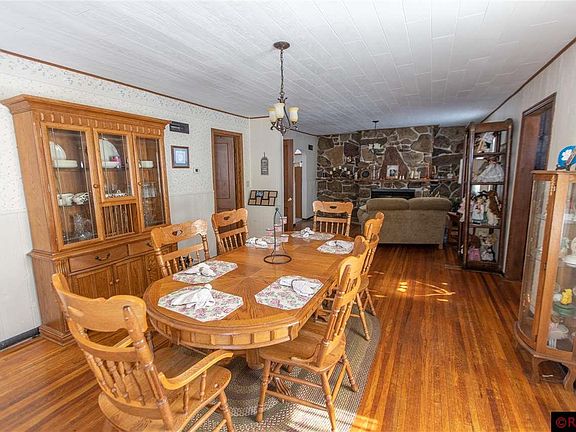 A truly unique property, just south of Mapleton near Lura Lake and Daly Park, this Cape Cod home sits on 11.5 acres! The expansive main floor features a formal dining room with stone fireplace and cozy seating area, large kitchen, living room, convenient foyer space with laundry, master bedroom, 1/2 bath, and family room/office/craft room (with wall heater). Upstairs you'll find a full bath and 2 additional bedrooms. With features like hardwood floors, an updated 1/2 bath (2019), ample cabinet space, large room sizes, new siding and roof (2017), this property must be seen to be appreciated! Outside, 2 machine sheds (54 x 72 pole shed; partial concrete) and (50 x 50 steel frame shed with floor drain, automatic overhead door, 220 amp service, and full concrete floor) offer ample opportunities for storage, workshop space, etc. Septic is non-compliant and seller is willing to negotiate to accommodate that. Absolutely worth a look for the potential this property holds!