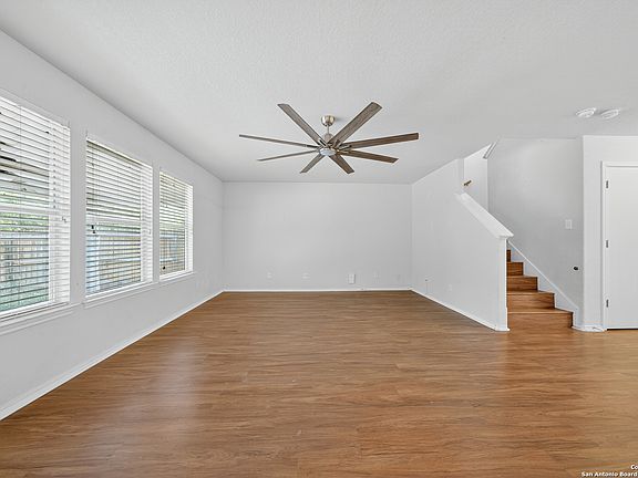 Beautifully updated 4-bedroom home in highly sought-after Laurel Canyon right at the Helotes line! Step into an open, airy layout with wood/laminate flooring throughout-no carpet anywhere. The kitchen features granite counters, stainless steel appliances, and a great breakfast-bar flow into the living area. All bedrooms are privately located upstairs along with a spacious game room perfect for movie nights, kids' space, or a second living area. The primary suite offers a true retreat with a large layout, separate garden tub and walk-in shower, and generous closet space. Out back, relax on the extended covered patio overlooking a peaceful greenbelt-ideal for quiet evenings or weekend BBQs. Neighborhood amenities include a pool, park, playground, covered swings, sand volleyball, basketball court, and community BBQ areas. Plus, you're minutes from Loop 1604, La Cantera, Helotes Marketplace, top dining, shopping, and entertainment. A fantastic Helotes-area find and we believe you will absolutely love it here!