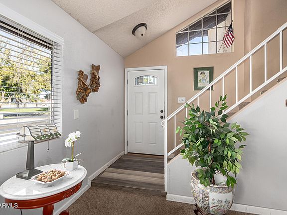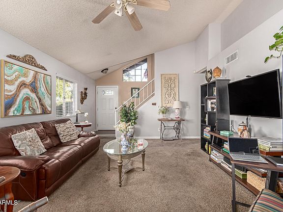 This charming 2-story home greets you with a lush front yard and plenty of personality! Inside, you'll find vaulted ceilings, soft carpet underfoot, and a neutral palette that's ready for your personal touch. The welcoming living and dining area make entertaining a breeze, while the kitchen shines with stainless steel appliances, crisp white cabinetry, and ample counter space. The main bedroom offers a cozy sitting area and a private bath perfect for unwinding after a long day. Another bedroom enjoys direct backyard access, ideal for guests or a home office. Outside, relax under the covered patio or fire up the grill for fun weekend barbecues. Conveniently located near great dining, shopping, and more. This gem won't last long!