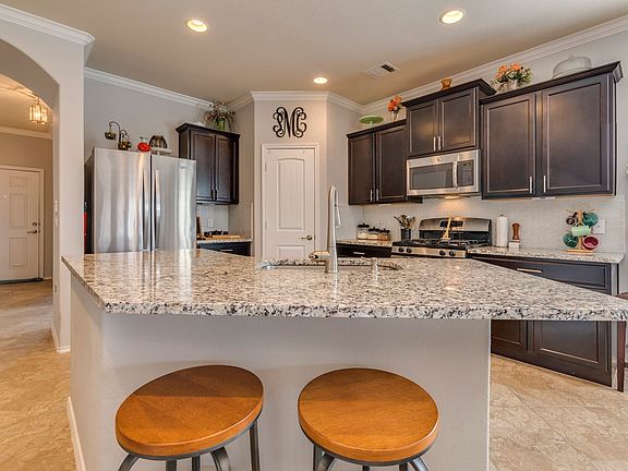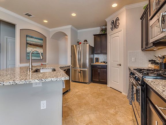 Charming single story 3bed 2bath with a study located on a private corner lot. Open floor plan with large ceramic tile and crown molding throughout main living areas. Kitchen features an angled island, 36" upper cabinets, upgraded granite and backsplash, touchless faucet, stainless steel appliances, recessed can LED lighting. Garden tub, walk-in shower, double vanity, cultured marble countertops in master bath. Screened in covered patio, large backyard and minutes from downtown Austin.