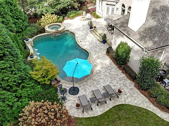 Exquisite 5-Bedroom, 5-Bath Brick Executive Estate with Resort-Style Amenities. Welcome to this move-in ready luxury estate home, offering the perfect blend of elegance, comfort, and thoughtful design. Nestled on a private street in one of the neighborhood’s most desirable locations—directly across from a community park—this exceptional residence is one of the largest floor plans available and is packed with premium upgrades and timeless style. The main level impresses with cathedral-height ceilings and rich hardwood floors throughout. Entertain effortlessly across multiple living spaces, including a formal dining room, spacious living room, keeping room, and a bright breakfast room. Plantation shutters frame the windows, adding Southern charm and privacy. At the heart of the home, the fully remodeled gourmet kitchen is a chef’s dream, featuring luxurious quartzite countertops, custom cabinetry, and top-of-the-line Wolf and Sub-Zero stainless steel appliances. Flowing seamlessly from the kitchen is a stunning view of the saltwater heated pool—perfectly situated on the main level for indoor-outdoor living and spectacular backyard views. The oversized primary suite on the main level offers a tranquil retreat with views of the pool, brand-new carpet (installed October 2025), and an expansive en-suite bathroom featuring modern updates and a spacious sized walk-in closet. Each generously sized secondary bedroom boasts its own private bathroom, offering comfort and privacy for family or guests. Upstairs features a custom office/homework nook with built-in bookshelves and desk space. The fully finished terrace level is an entertainer’s paradise with a custom wood bar, billiards room, cozy fireplace, movie theater room, workout area, private office, and an additional bedroom with en-suite bath—ideal for multi-generational living or visiting guests. Additional highlights include: recently updated interior and exterior paint (October 2025), custom double iron front doors, new designer lighting throughout, fully fenced, level backyard, Saltwater heated pool for year-round enjoyment. Meticulously maintained home in the sought-after Laurel Springs Golf and Country Club: Resort-style living in a community centered around a Jack Nicklaus Golf Course. Private gated neighborhood amenities include: 24 hour security, clubhouse with fitness center, 2 swimming pools with a waterslide, tennis courts, tennis pavilion, playground area, basketball courts, and dog park. Award Winning Public Schools!!!
