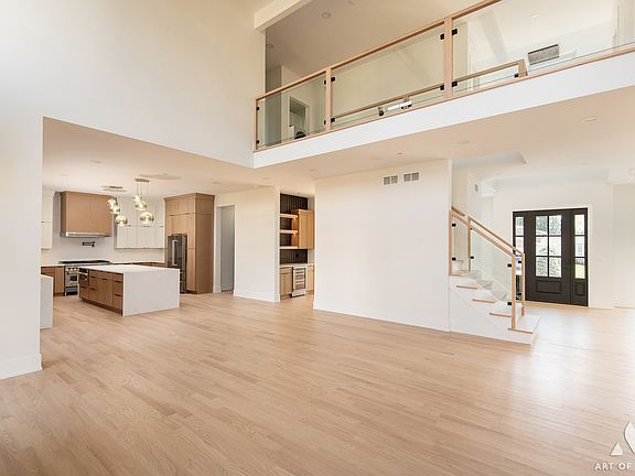 Gas fireplaceOversized islandExpansive covered deckWalk-in pantryTall windowsCustom glass-panel staircase railingEnclosed toilet