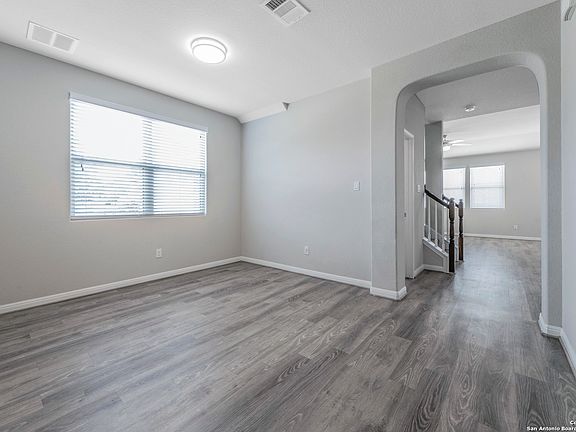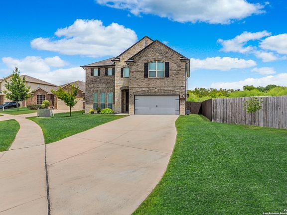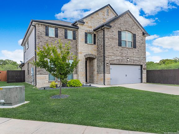 **Back on Market**Buyer was unable to obtain CTC from lender. Gorgeous two story, 4 bedrooms, 2.5 bathroom home with a permanent green-belt which allows for privacy and relaxation. The driveway accommodates 6 cars, perfect for your visitors. This home has been well-kept and models current new construction finishes. There is luxury vinyl flooring downstairs and refreshed carpet in bedrooms, office and upstairs. The downstairs offers a large formal dining room, high ceilings, and an open floorplan. The living room has tons of space, custom shelving, and plenty of windows to allow for ample natural light! The island kitchen has plenty of bartop & counter space, large pantry, and lots of cabinets. The spacious master suite is downstairs offering a bay window, double vanity, large garden tub-shower combo, beautiful ceramic tile, and walk-in closet. Upstairs offers a game room or second living area, and all secondary bedrooms. The upstairs also offers a pre-wired media room that's plug-in ready for those family movie nights. Laundry room is downstairs with additional cabinetry and custom pedestal storage for washer and dryer. This home has a potassium chloride water softener. The back patio offers 800 sq ft for entertaining! Close to I-35, Randolph AFB, The Forum, IKEA, Super-Grocery Store, Upscale Theater/Entertainment, and right across from North East Lakeview College. Come see this beauty for yourself! Welcome home!