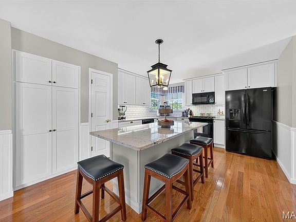Premium flat lot w/ walkable access to Grant's Trail. Open floor plan house has been meticulously updated throughout! Kitchen has 42 inch white shaker cabinets with gold hardware, pull out drawers, large center island w/seating, dual fuel Electrolux range, 2 pantry cabinets, sleek subway tile backsplash, & granite countertops. Kitchen opens to the breakfast room w/ gas fireplace, bay window & built-in bookcases. Backdoor off the breakfast room opens to the 4 season room w/ vaulted ceiling, wiring for speaker system, & fan. Off the sunroom is the deck with stairs to the backyard & grilling area. Main floor laundry, living room, & dining room complete the main level. Upstairs is the primary bedroom suite with large walk-in closet. Primary bath has a dual vanity with separate tub & shower. 3 additional bedroom & 2nd full bath completes the upstairs. Walk-out LL provides the perfect place to spread out. Movie room has a speaker system with multi TV wiring system for the ultimate game day. Recreation room with pool table opens to the movie room & has French doors to the backyard. LL has additional flex space for dining or gaming area. Workshop/storage room with built-in shelving & work bench with electric and tool storage complete the LL. Additional features include: premium hardwood floors throughout, newer tilt-in windows & doors, crown molding, extra storage closets, sprinkler system, professional landscaping, & newer roof (2025).