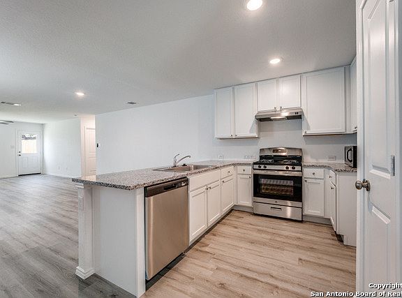 Available now - and for a limited time, qualified tenants may receive one month of free rent with a 12-month lease! Welcome to this beautifully maintained 4-bedroom, 2-bathroom single-story home in the desirable Waterwheel community. Built in 2021, this 1,635 sq ft residence features an open-concept floor plan with a spacious living area, eat-in kitchen with breakfast bar, and a full suite of stainless steel appliances - including a refrigerator, stove/oven, microwave, dishwasher, and water softener. The primary suite offers a walk-in closet and private bath, while the secondary bedrooms provide comfortable space for family or guests. Additional highlights include central heating and air, vinyl plank flooring, double-pane windows for energy efficiency, a two-car garage, in-home laundry connections, a sprinkler system, and a fully fenced backyard for added privacy. Conveniently located near Loop 1604 and Culebra Road, this home offers quick access to schools, shopping, and dining. Available now and ready for immediate move-in.