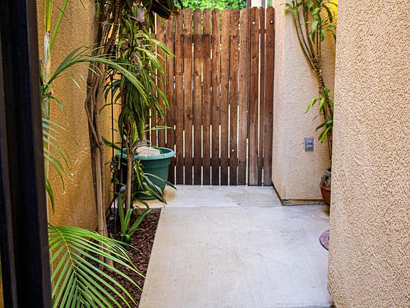 SMART HOME, No details spared. Beautiful move in ready, two story PUD privately located in a small 18 unit complex. As you walk through the tropical manicured garden you will be welcomed by beautiful travertine and wood floors. The kitchen features Jenn Air appliances which include double oven, double dishwasher and granite counter tops. The living room has vaulted ceilings, new wood plantation shutters, gas fireplace, recessed lighting and smooth ceiling. This 3 bedroom 2 1/2 bathroom features a renovated master bathroom with double sinks, pebble bottom shower, soft close drawers, and walk in closet. This home comes complete with an alarm system, Nest thermostat and carbon monoxide detectors with phone access. The 2 car attached garage has an epoxy floor, triply ply door, garage door batter back up all accessible by phone. The private patio has stamped concrete floors and soothing water fountain.