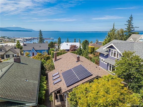 Gorgeous South Hill 1921 Bungalow just seconds to Fairhaven & 100% Move-In Ready! Solid & straight as the day it was built, yet w/modern electrical incl. Solar Power, hi-eff. furnace + cozy Jotul gaslog fireplace. Serve your guests in the formal dining room, catch every stunning sunset from the A1-rebuilt deck, or sip tea in the private back courtyard. Exquisite landscaping creates abundant privacy. Low-height bsmt. features extra finished room + 1/2 bath, laundry & storage. Alley parking, too!