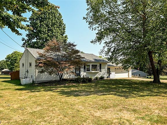 Welcome Home!! Just what you have all been waiting for. A beautiful ranch in Green! Tucked back in the Alpine Village neighborhood, just minutes from the Nimisila Reservoir, Mayfair and Rain Tree golf courses, the airport and all of the great shopping and dining spots you love! Located on an incredible lot with a freshly stained wooden privacy fence, large covered back patio, fire pit and beautiful mature tree. Come on in through the fully enclosed breezeway. This fantastic area is perfect as a mudroom, catch-all spot, pet area, play space for the kids or extended entertaining space. Then we have a charming eat-in kitchen featuring updated stainless appliances (that are all included), bright white cabinets with contrasting glass backsplash and sleek granite look countertops. The living room features warm original hardwood floors, recessed lighting and a bay window to sit at and enjoy your view of the neighborhood. There is currently lighting on one side of the room that gives an option of creating additional dining space too. Down the hall we have 3 spacious bedrooms and a full bathroom with a newer vanity. That's not all... The lower level offers tons of additional space! Coming down stairs into one large finished room, then into and even bigger room! Office, teenager hang out, rec room or man cave, there's room for anything you need. There is also a nice second full bathroom! Great laundry area (both washer and dryer stay) and don't miss the storage room too. Updates include newer basement carpet, kitchen appliances 2019, A/C, water heater and roof 2020, new pressure gauge on the water pressure tank and stained fence in 2024. Well and septic inspections have been completed and passed in May of this year. You definitely need to check this one out today!