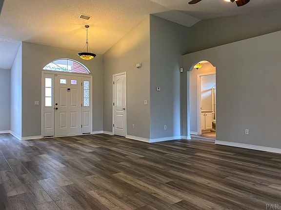 Move-in Ready - Welcome Home! Well-maintained red-brick 3/2 nicely landscaped in the Adrian Woods s/d, off Avalon Blvd just South of I-10. Light & bright open/split floor plan with new wood-look LVP, new bedroom carpet, and fresh interior paint throughout! Side-entry 2-car garage with large driveway for boat or small RV, a privacy fenced backyard, and large screened in patio. Inside it has 2,230 sq ft and spacious rooms. Great room with cathedral ceiling, plant ledges, and corner fireplace. Dining room, fully-equipped kitchen, breakfast bar, and breakfast room. Large master bedroom suite with trey ceiling, and sliding glass door to screened patio. Master bath has his/hers walk-in closets, double vanities, tub, and separate shower. Both spare bedrooms are over-sized with ceiling fans. Other amenities include arched doorways, bull-nosed corners, security system, tiled kitchen, laundry, and baths, large laundry room with room for an additional fridge, high-efficiency hybrid heat pump water heater, architectural shingles, and much more. You'll love this subdivision with its fresh-water catch & release pond, picnic area, and views of the BAY from many parts of the neighborhood. Minutes from Gulf Breeze, I-10, and the Garcon Point public boat ramp. Call your agent or the listing agent to see this beautiful home today!
