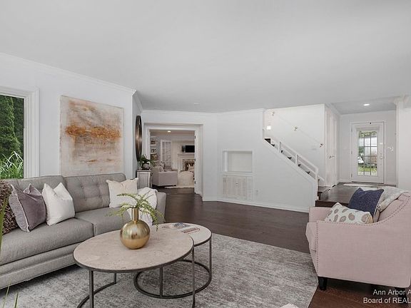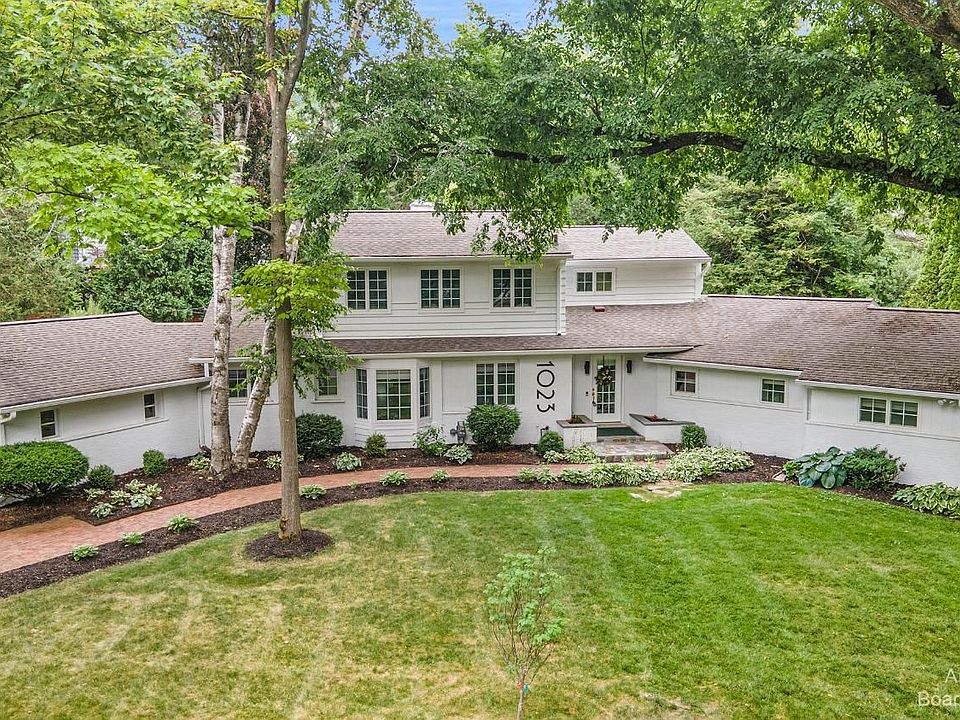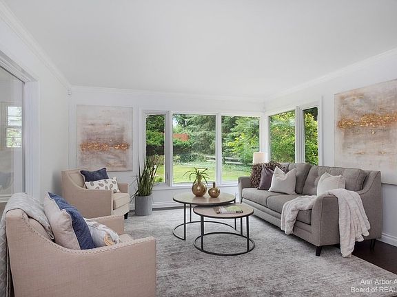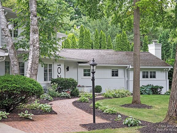 Situated in a parklike setting in the heart of the Ann Arbor Hills area, this modern home on a spacious lot features elegant and stylish updates throughout. It has been designed for entertaining and boasts a gorgeous, high-end kitchen that opens to a light filled Florida room with skylights. It transitions to the outdoor patio for both outdoor grilling and indoor dining. The two living areas on the main floor mean you have plenty of room for guests, plus space for a more casual night at home with family. The first floor primary bedroom boasts a study/sitting room, a newer spa-like bath with dual vanity, soaking tub and separate shower, a spacious walk-in closet, and gorgeous private bedroom with fireplace. Three bedrooms upstairs, plus a remodeled full bath. The lower level houses the laundry and space for an exercise room. Two car attached garage with newer insulated glass door, plus an EV charger. Newer Andersen windows. This home is surrounded by mature trees and plenty of wildlife and feels like a true escape while being just minutes to downtown Ann Arbor. Easy walk to Gallup Park, The Arboretum, Angell & Tappan Schools and the University of Michigan Hospital.