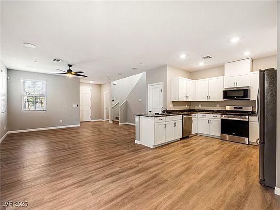 New photos! Must see. Beautiful 2-story home constructed in 2020 in a gated community close to Saddlebrook Park off of the 215 freeway and 5th St. Conveniently located 15 minutes from Nellis Air Force Base. Close to restaurants and shopping with ample parking for guests. Home features a modern open layout with a spacious living room great for relaxation and entertaining. Home has solar panels and also features a 220 power for charging your electric vehicle. The garage is located behind the home creating a beautiful unobstructed view of the home from the front. Nearby park offers tennis, basketball, volleyball, BBQ and pet park for an active lifestyle.