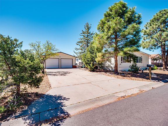 Welcome to this charming manufactured home nestled along the canyon edge in the peaceful Tsikumu Village neighborhood. Surrounded by nature and mature landscaping, the front yard boasts large, towering trees that frame the home and provide shade and privacy as you approach the front porch. Step up into the inviting entryway and immediately feel the warmth of the spacious carpeted living room that extends throughout the home. Cozy up by the wood-burning stove on chilly evenings, and enjoy the built-in cabinetry—perfect for displaying china or creating a convenient bar setup. The kitchen is both stylish and functional, featuring ample cabinet space with green cabinetry, black hardware, light countertops, a double oven, and a gas cooktop. A peninsula with bar seating offers a perfect spot for morning coffee or casual meals. Just off the kitchen is a bright dining area with sliding glass doors that open to the back patio—ideal for outdoor grilling and dining with a view. The generous primary en-suite is a private retreat with a large walk-in closet and an attached bathroom that includes a double sink vanity and a shower/tub combination. Two additional guest bedrooms offer comfortable accommodations, and a full guest bathroom with a single sink vanity serves the home. The laundry room leads to a versatile bonus room with a separate side entrance—great for a home office, studio, or hobby space. Outside, enjoy an open backyard with unobstructed views and stunning sights of the Sangre de Cristo Mountains. A grass lawn, a brick patio for entertaining, and retaining walls ideal for flower or vegetable gardens make this outdoor space versatile in creating your dream space. Located close to parks, scenic trails, and horse stalls, this home offers the perfect blend of comfort, convenience, and natural beauty. Book your tour today!