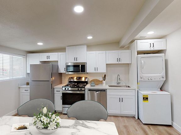 The unit and entire property has undergone a renovation, and features: washer & dryer, new appliances, new quartz counters, cabinets, new baseboards, new doors, modern hardware, new stucco, new roof, on-trend finishes! Google maps images are not up to date, landscaping will be done any week once the weather is more favorable for planting.