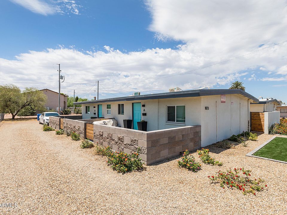 Herradura Villas Fourplex (2 duplexes one lot) has undergone a comprehensive renovation with no detail overlooked. Each of the 4 units 1-bedroom, 1-bathroom units boasts high-end finishes and thoughtful upgrades, including brand-new roofs, tankless water heaters, new sewer and water lines, smooth synthetic stucco with foam backing, upgraded electrical systems and panels, modern kitchen cabinetry, flooring, and bathrooms. All permitted with certificates of Occupancy. Each unit is individually metered for electricity and gas, while each building is individually metered for water.