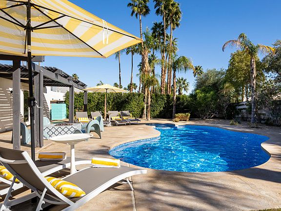 With bright mid century modern colors at every turn, and incredible mountain views from the generously sized backyard, Avalon House is the 3-bedroom Palm Springs home of your vacation dreams.