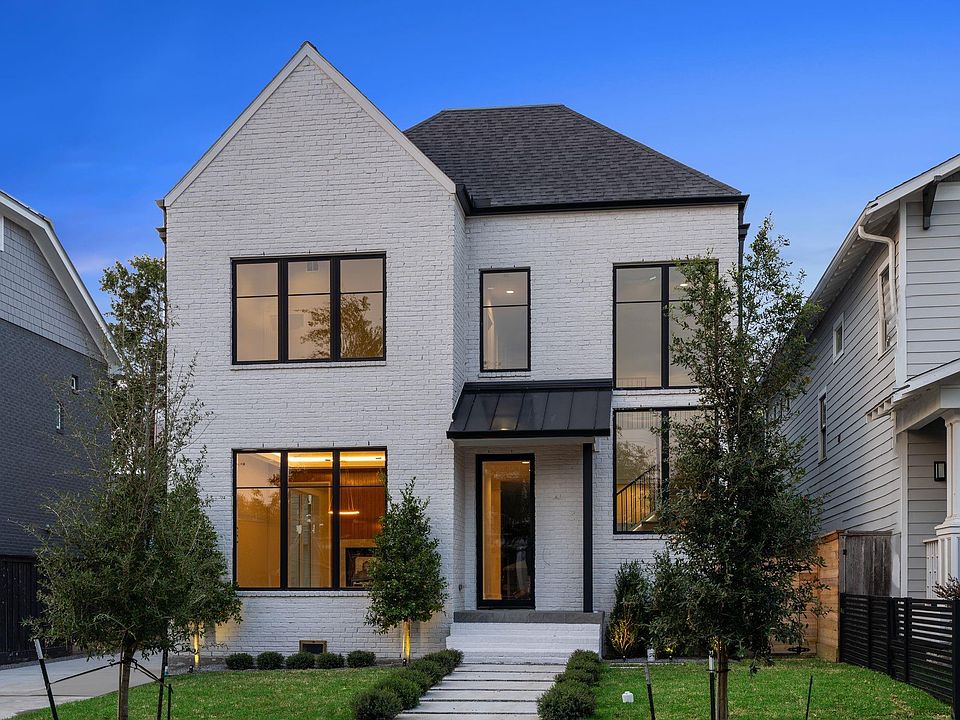 Welcome to this exquisite modern residence, where timeless architecture meets contemporary luxury. Step inside through the impressive glass-paneled entryway and enjoy sun-drenched interiors, thanks to oversized windows that frame the living spaces with natural light. The first level design is perfect for both everyday living and entertaining, with seamless flow from the spacious living areas to the gourmet kitchen and beyond. Upstairs, generously sized bedrooms and a luxurious primary suite offer the perfect retreat, complete with spa-inspired amenities. Finally, the third level includes a sizable gameroom and extra bedroom suite. Outside, professionally landscaped grounds with manicured greenery and a walkway lead to the front door, while a wide driveway provides ample parking. Ideally situated on a highly-desirable street within Woodland Heights, this stunning new construction is truly one-of-a-kind.