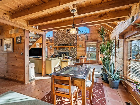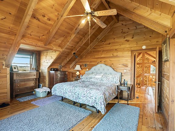 Treehouse-style chicken coopWood-burning fireplaceCharming story-and-a-half log homeWatering troughBeautiful board fencingPeaceful surroundingsExpansive views