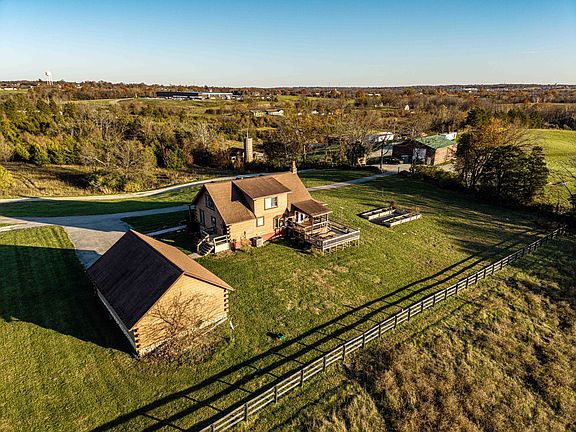 Discover this Beautiful, Conveniently Located yet Private property offering almost 35 Acres of Scenic, Versatile, and Inviting land. This Remarkable mini-farm features a Charming story-and-a-half Log home with Warm Log Interior, Vaulted, Beamed Ceilings, a Wood-Burning Fireplace (see disclosure), and a Cozy Loft that could serve as an additional bedroom. Enjoy Abundant Natural Light from the many windows, along with Separate Laundry, Two and a Half Baths, a Magnificent First Floor Primary EnSuite, and a Spacious, Relaxing Wraparound Deck with a covered section and a grill deck below—perfect for outdoor living. The land includes Beautiful Board Fencing, a Watering Trough, a Treehouse-Style Chicken Coop, a Raised Garden Bed, and a Half-Acre Stocked Pond for peaceful enjoyment. For your agricultural or recreational needs, the property is already set up with Eight Campsites featuring raised fire pits. It is zoned Agri-Tourism, adding even more Exciting potential. (For more pictures, see Bourbon Trail Campgrounds.) Outbuildings include a 40 X 40 Barn with a Large Lean-To Overhang and 2 Finished Stalls with room for up to 6, and a Spacious 50×40 Shop with electricity, generator, concrete floors, a loft, RV-Sized Garage Doors, a 50 Amp Hook-Up, and a closed-in office—creating endless Functional and Flexible workspace options. Additionally, there is a Two and a Half Car Detached Garage. The Massive 34+ Acres, featuring 4 Fields for Rotation capability, is Conveniently located near the Bourbon Trail and Bluegrass Parkway, as well as Lexington and Louisville. With Expansive Views, Peaceful Surroundings, and Unlimited Possibilities, this property truly offers a Unique and Captivating lifestyle. Call for your private showing, and PACK YOUR BAGS!